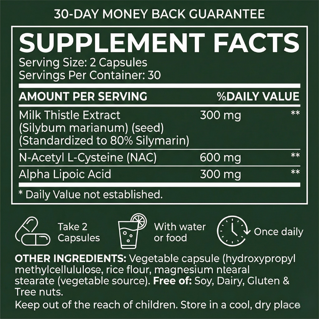 A carefully formulated Milk Thistle supplement designed to support liver health, antioxidant defense, and overall daily wellness.